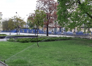 System nawadniający zieleń wokół Placu Jana Nowaka Jeziorańskiego w Krakowie